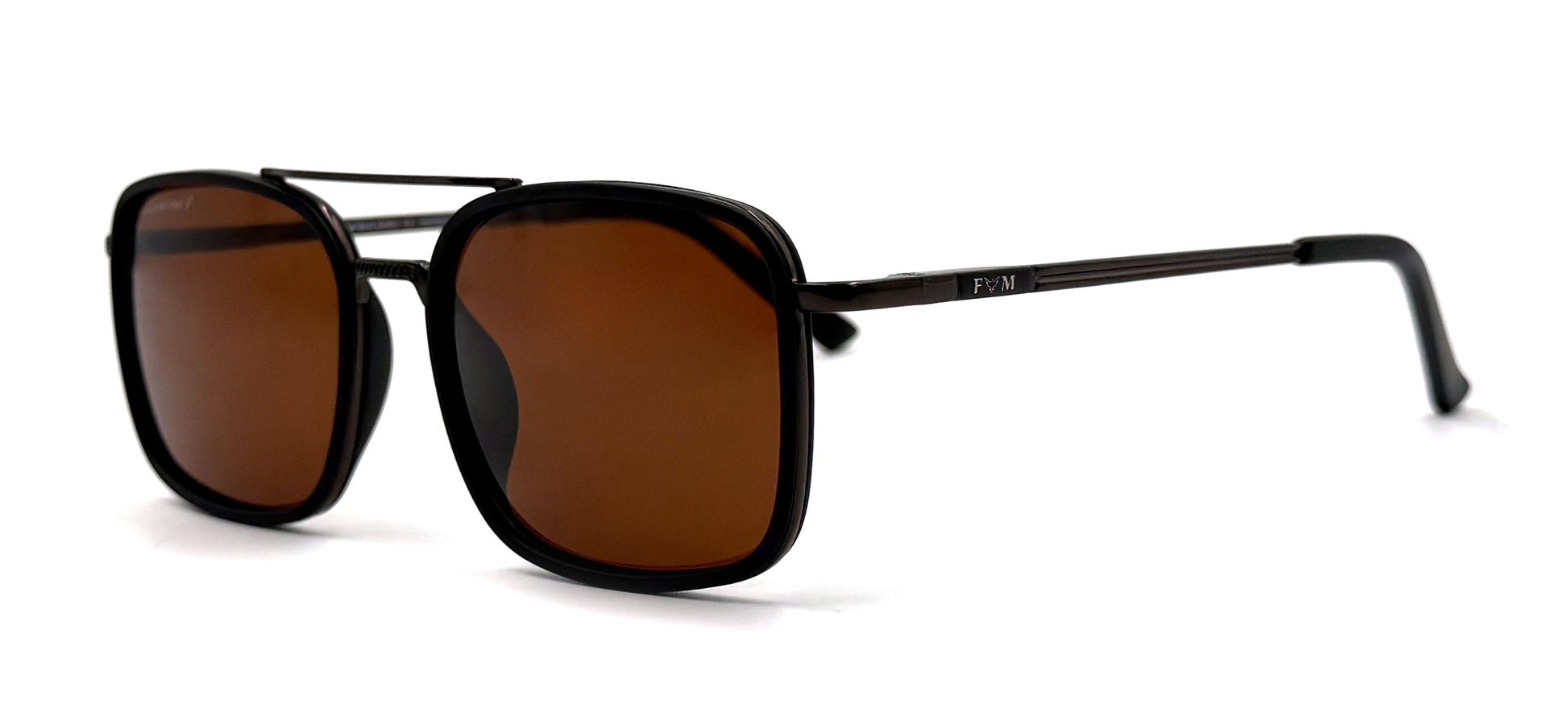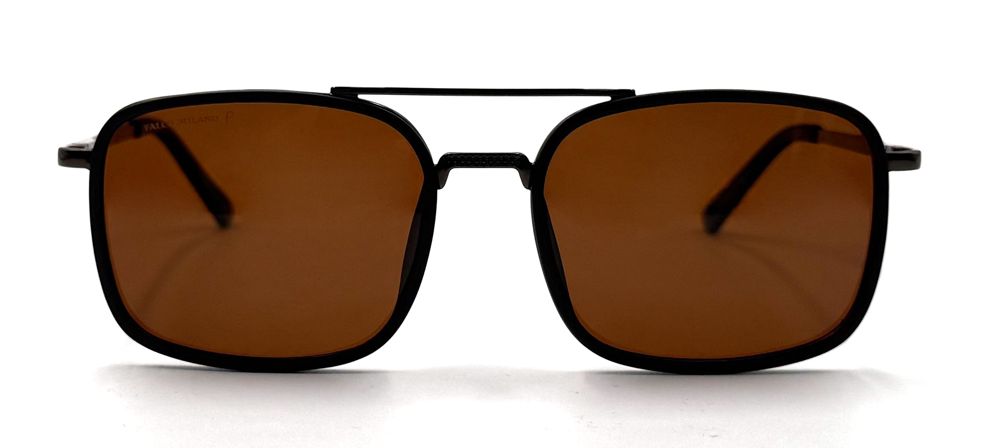 This style features a solid Brown frame made from Metal, fitted with Brown Polarized lenses.