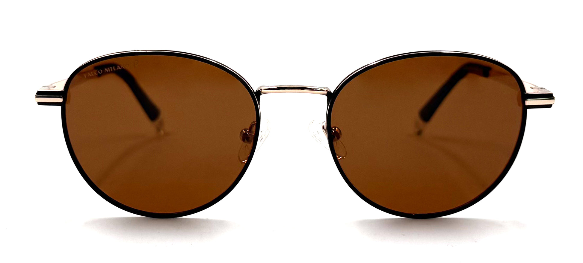 This style features a solid Brown frame made from Metal, fitted with Brown Polarized lenses.